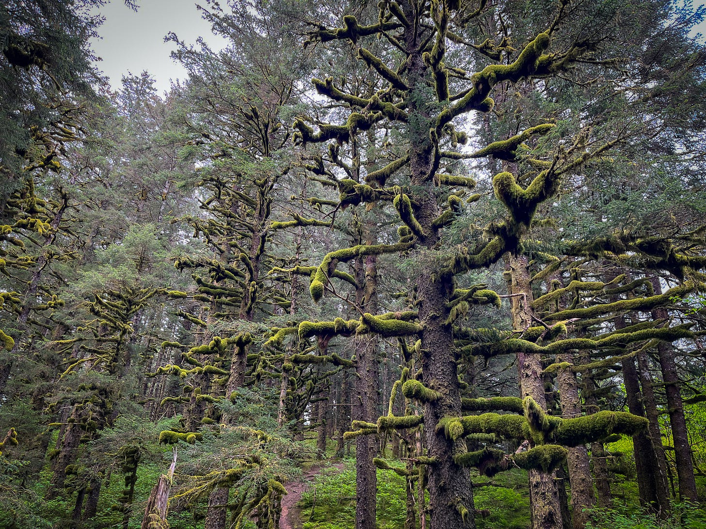 One note before I continue, since I’ve gotten more subscribers (hello!!). Some of these Hot Moss newsletters will be scientifically motivated, some (next week for example) will be pop culture, and some will be travel/ hiking blogs. All of them will be mossy. While I hope it’s become clear by now that I’m not a bryologist (aka moss-y scientist), I am an observational ecologist. I’ve been having a nerdy blast learning more and more about forest ecology, and I’m so excited to keep sharing it.